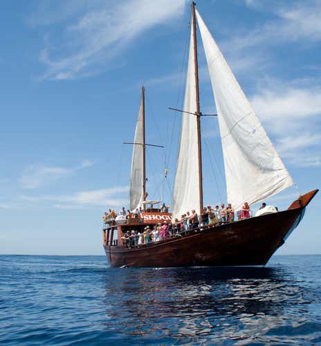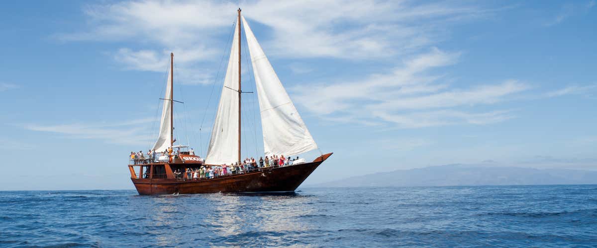 Nos reuniremos 15 minutos antes en el punto de encuentro en Puerto Colón. Tras la bienvenida de la tripulación, subiremos a bordo de un barco árabe de 24 metros para comenzar nuestra travesía por una zona protegida, entre las mas hermosas de Tenerife.