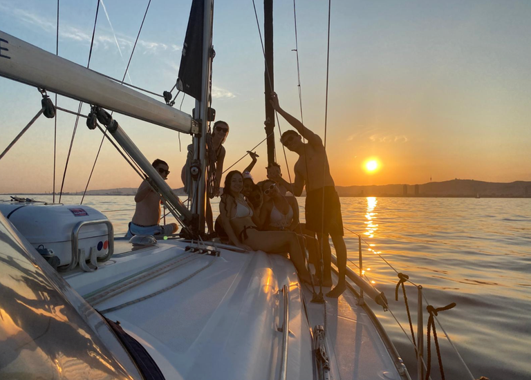 Siempre que el viento lo permita, navegaremos hasta el Port Vell para ver la ciudad más de cerca y desplegaremos las velas para disfrutar del Mediterráneo en su forma más pura. Durante la travesía, brindaremos con una copa de cava acompañada de algo de picar (como patatas, aceitunas...) mientras el cielo se tiñe de tonos cálidos y la ciudad se despide del día.