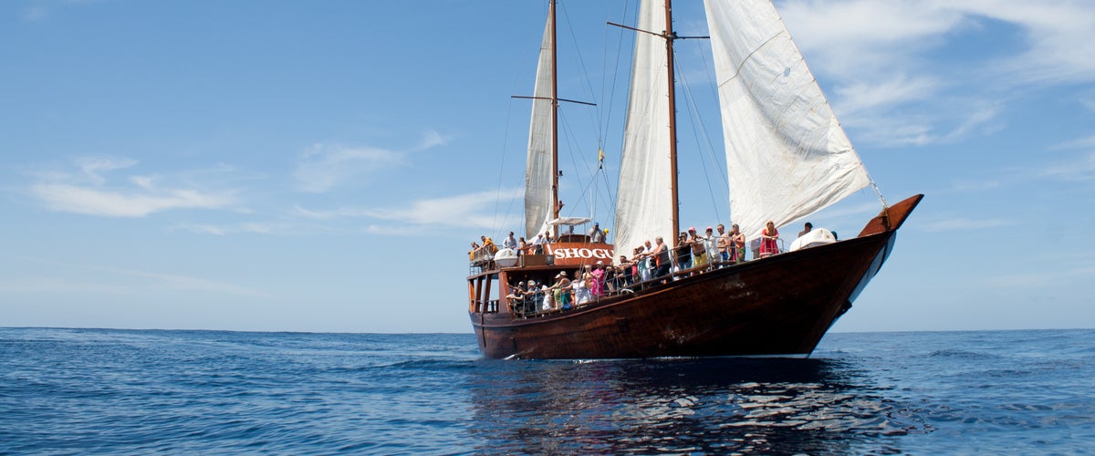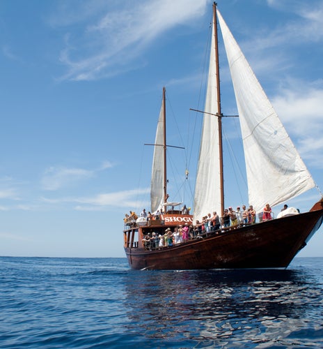 Nos reuniremos en Puerto Colón en Costa Adeje, unos 15 minutos antes de la salida. Tras la bienvenida de nuestra amable tripulación, subiremos a bordo de una majestuosa goleta de madera de 24 metros que nos transportará a otra época mientras soltamos amarras para comenzar nuestra aventura.