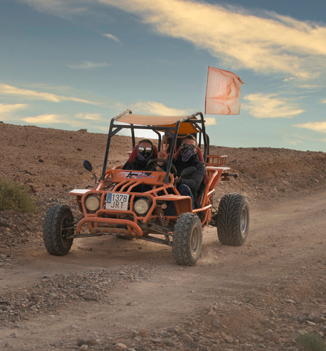 Nos veremos 30 minutos antes de la hora acordada en el punto de encuentro en Caleta de Fuste, Fuerteventura, donde nos recibirá el guía y comenzará la preparación. Después de una breve explicación sobre el manejo del buggy y las normas de seguridad, nos equiparemos y se nos asignarán los vehículos para dar inicio a la aventura.