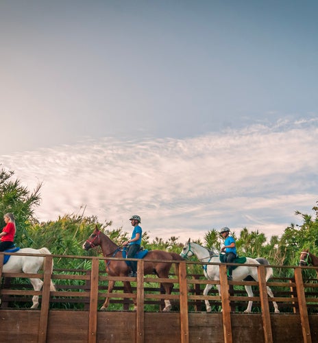 Con los cascos puestos y los caballos ya ensillados y listos para la aventura, subiremos a la montura para comenzar nuestro recorrido. El guía, que también nos acompañará a caballo, nos irá dando todas las claves e instrucciones necesarias para manejar las riendas con soltura mientras avanzamos por el terreno.
