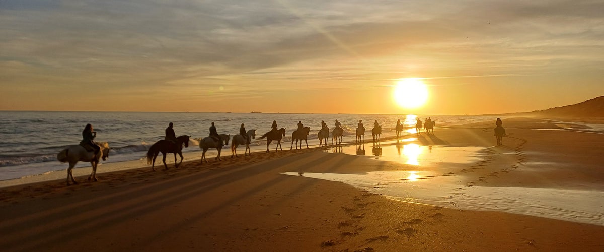 - Siente la libertad de cabalgar por una playa virgen de 28 km envuelto en los colores de la Costa de la Luz