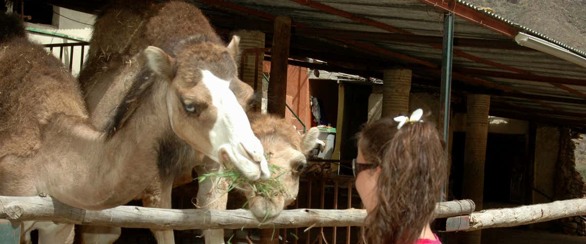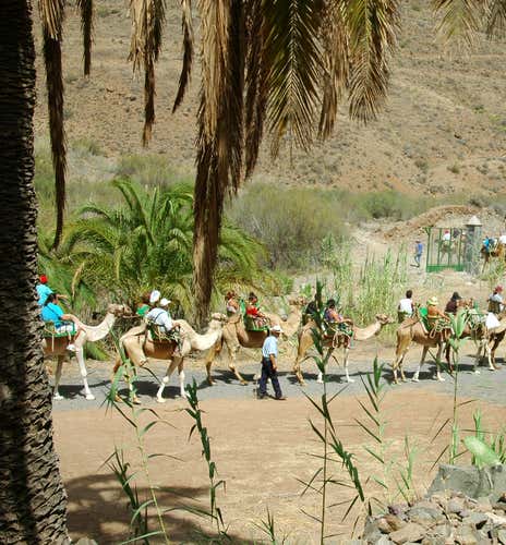 Comenzará entonces nuestro paseo de 1 hora en camello, avanzando en caravana a través del impresionante palmeral de más de 300 años de antigüedad, dentro de la Reserva Natural de Fataga, un enclave de enorme valor paisajístico y etnohistórico que nos hará sentir como en un auténtico escenario oriental.