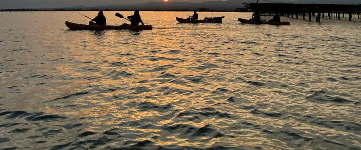 Ruta en kayak al atardecer entre las mejilloneras de la Badia del Fangar
