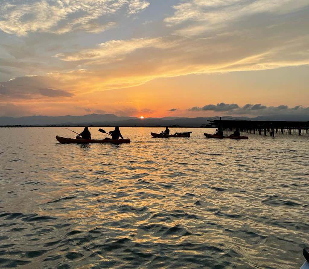 El monitor nos guiará en un recorrido circular en uno de los entornos más hermosos del Delta del Ebro. El agua empezará a teñirse de tonos rojizos y dorados mientras nosotros remamos bajo las estructuras de las mejilloneras, protagonistas indiscutibles de la zona.