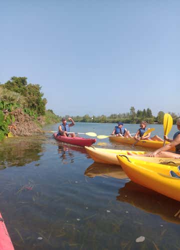 Hay a disposición 3 kayaks individuales y 13 dobles que se pueden usar como triples para 2 adultos y un menor de máximo 10 años que irá en el medio.