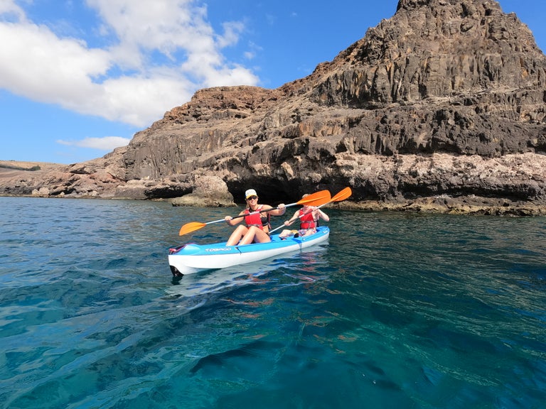 Siente la libertad de deslizarte en kayak por una costa de acantilados impresionantes y playas vírgenes en una ruta guiada de 2,5 horas. Una experiencia perfecta para disfrutar en familia o con amigos, donde combinarás el deporte suave con una parada opcional de 30 minutos para hacer snorkel y descubrir la rica vida submarina de las Canarias.