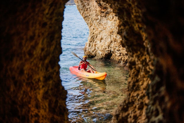 Nos veremos 5 minutos antes de la hora acordada en el punto de encuentro en Es Figueral. Nada más llegar, realizaremos un pequeño briefing inicial para presentarnos y conocer la técnica de paleo y el recorrido. No te preocupes si no tienes experiencia; nos enseñarán todo lo necesario para que manejemos el kayak con total seguridad y confianza.