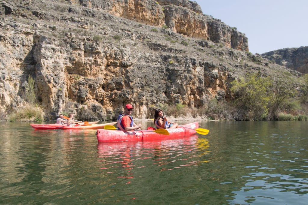 A medida que empecemos a palear por la zona septentrional de las Hoces del Duratón, los imponentes cañones empezarán a levantarse a nuestro lado, regalándonos un paisaje que solo es accesible si vas a bordo de un kayak. Es una sensación increíble mirar hacia arriba y ver cómo los buitres leonados, que tienen aquí su mayor colonia de toda Europa, planean justo sobre nuestras cabezas vigilando nuestros movimientos desde sus nidos en las rocas. Como es una ruta libre, el plan lo marcamos nosotros: podemos darle caña a los brazos para explorar cada recoveco o simplemente dejarnos llevar mientras disfrutamos del silencio absoluto del cañón.