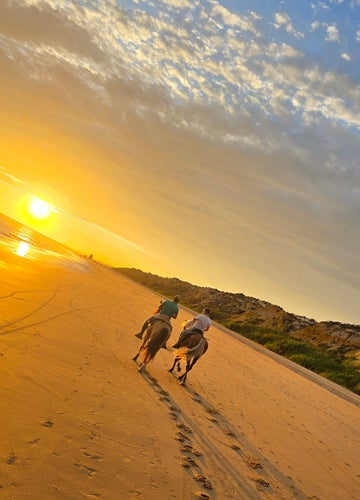 - Cabalga por la orilla de una playa virgen de 28 km mientras sientes la brisa y la inmensidad del océano Atlántico