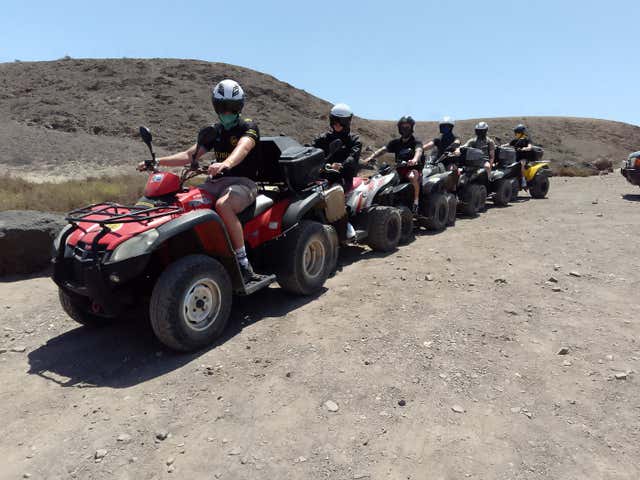 Nos veremos 10 minutos antes de la hora acordada en el punto de encuentro en Playa Blanca, donde nos recibirá nuestro guía para darnos la bienvenida y comenzar la preparación. Comprobarán que tengamos el carnet de conducir físico, recibiremos el casco y una breve explicación sobre el manejo del quad y las normas de seguridad antes de iniciar la ruta.