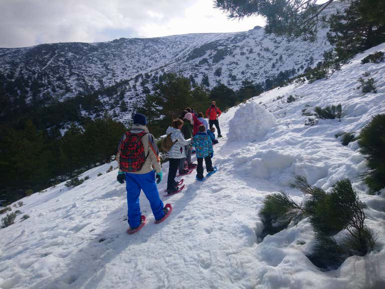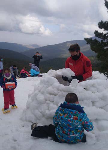 Vive una aventura familiar en el Puerto de Navacerrada: ruta con raquetas de nieve y taller de iglú. Pasearéis sobre la nieve de la Sierra de Guadarrama y aprenderéis a construir vuestro propio refugio de nieve con la ayuda del guía.