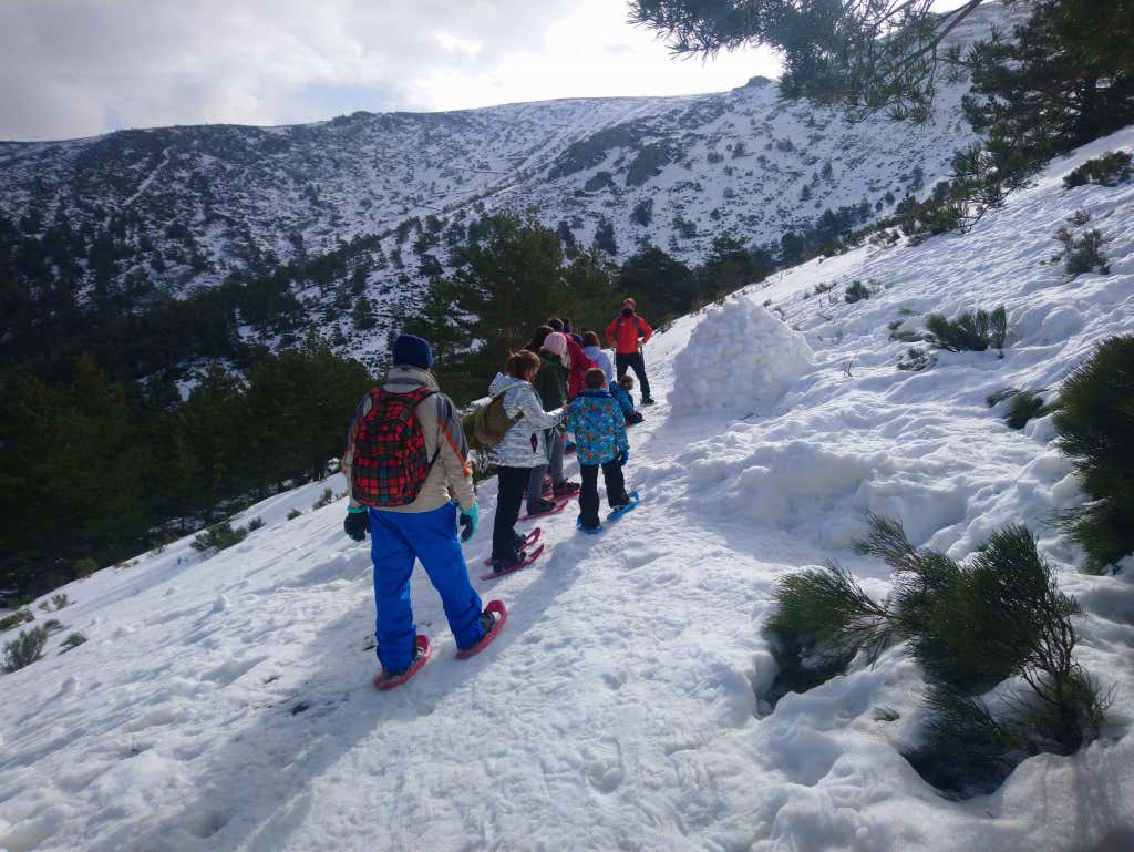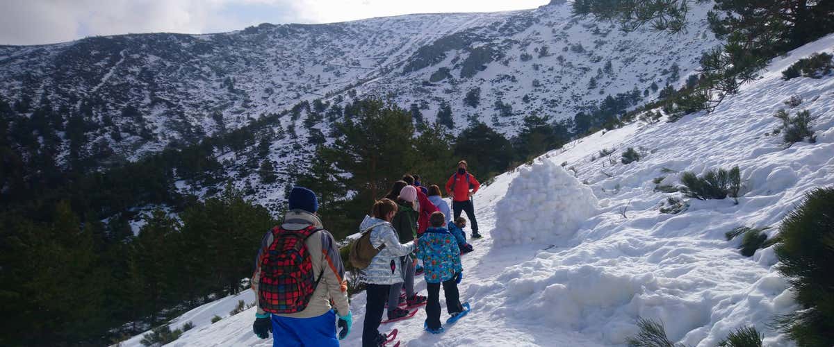 Ruta con raquetas de nieve y construcción de iglú para familias en Navacerrada