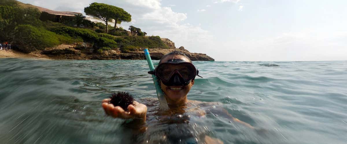 Con las gafas y el tubo puesto nos adentraremos en las aguas de la Costa Dorada para descubrir especies como estrellas de mar, erizos, pulpos o sepias. Siempre acompañados del monitor, que nos irá explicando alguna que otra curiosidad de la zona y nos guiará hacia los rincones más interesantes de la cala. Tras 45 minutos de snorkel regresaremos andando al puerto.