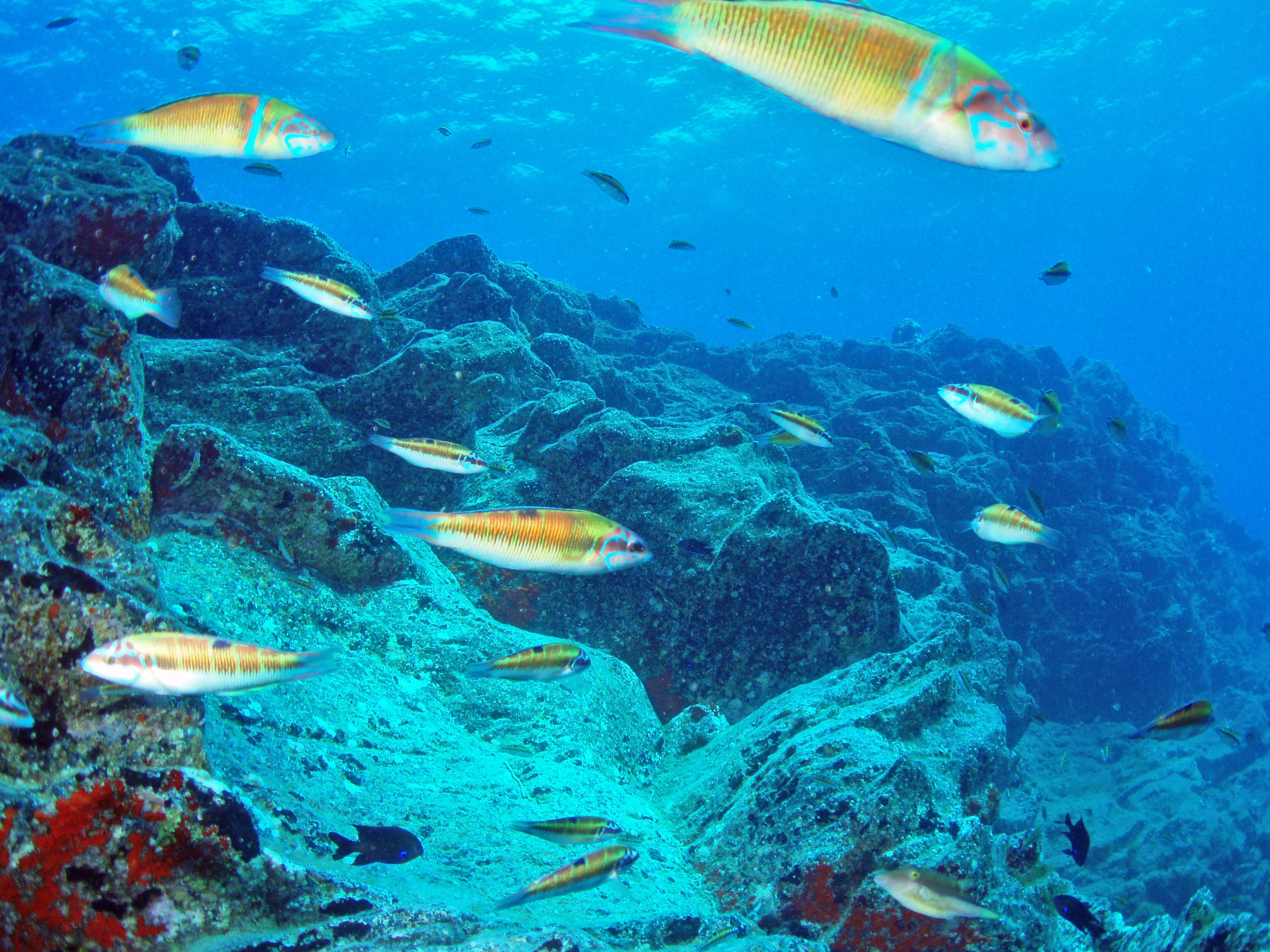 Saldremos directamente desde la costa para sumergirnos en el entorno de Cala en Brut. Al ser una zona de roca y plataformas, la visibilidad es increíble, lo que nos permitirá observar con total claridad la vida típica del Mediterráneo: desde coloridas doncellas y salmonetes de roca hasta obladas y sargos. Exploraremos las pequeñas grutas y recovecos de la cala, donde suele esconderse la fauna más curiosa y esquiva.
