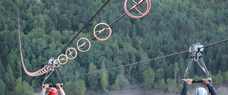En Hoz de Jaca te espera una tirolina de 950 metros sobre el embalse de Búbal. Cerca de 60 segundos en los que podrás alcanzar los 90 km/h. Además, el cable es doble y la diversión también, ya que podrás interactuar con tu compañero de aventura.