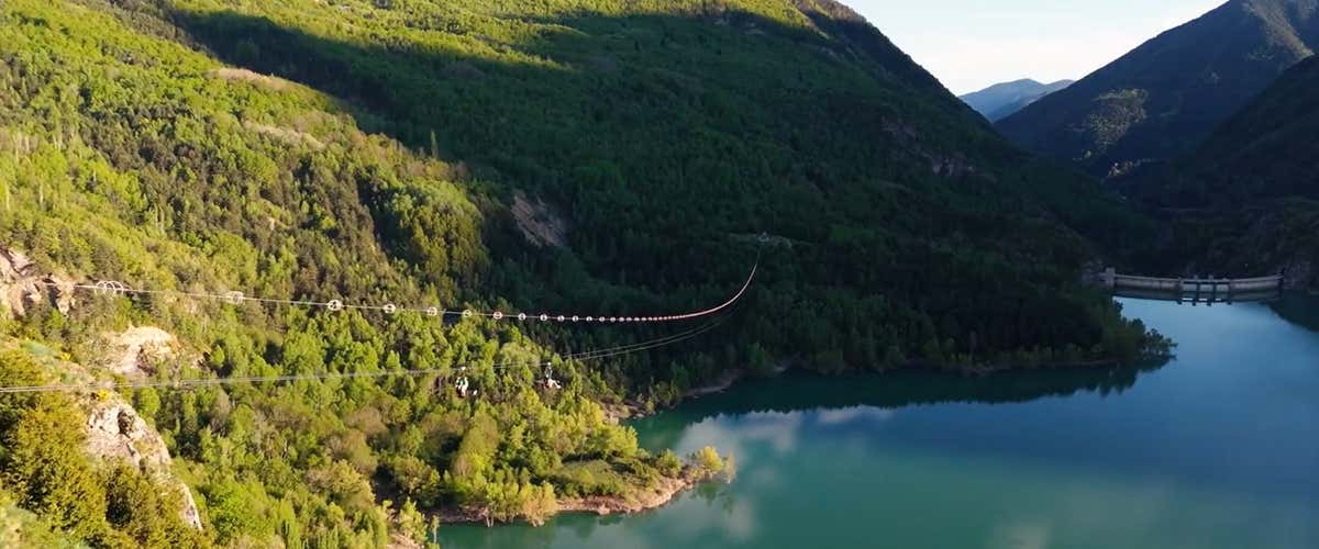 - Recorre 950 m sobre el embalse de Búbal y cruza el valle de Tena en un vuelo inolvidable