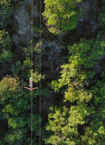 Recorreremos juntos 2 km de tirolina con unos 400 metros de desnivel, alcanzando más de 160 km/h en aproximadamente 1 minuto y medio de vuelo (no intentes gritar todo el tiempo o perderás la voz).