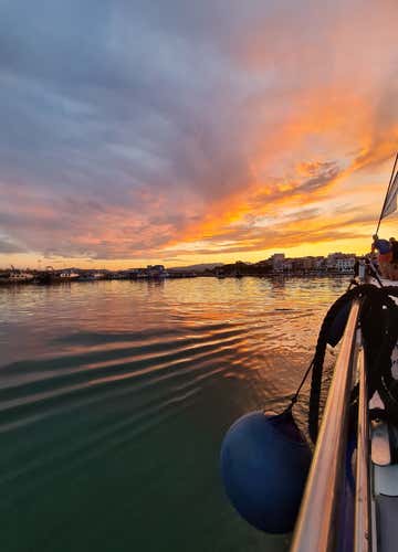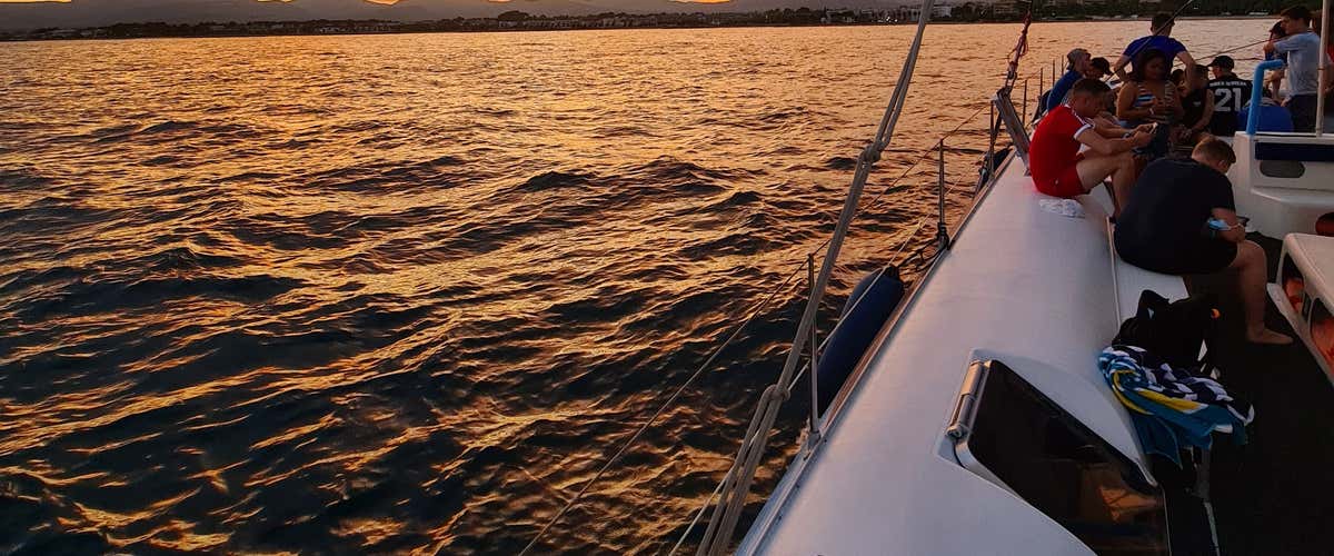 Tras 2 horas de diversión y relax, regresaremos al puerto de Cambrils. Despeinados por la brisa del mar e iluminados por el cielo teñido de naranja.