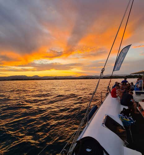 - Relájate a bordo, zambúllete en alta mar y brinda mientras el cielo se tiñe de naranja