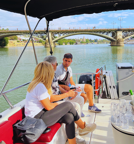 Te recibirá tu guía privado, lista para zarpar contigo y tu grupo en un recorrido exclusivo por las maravillas de Sevilla vistas desde el río Guadalquivir.