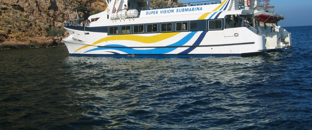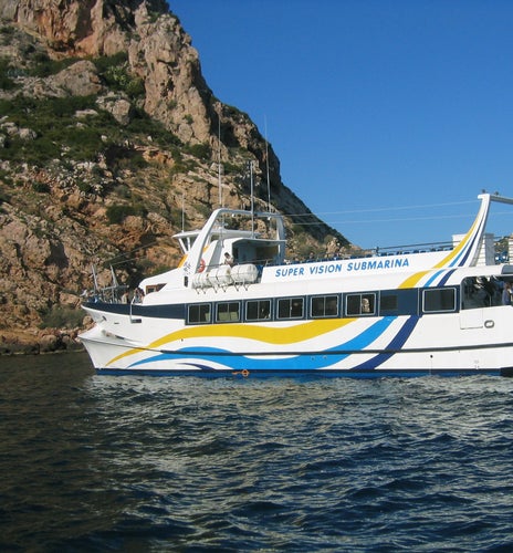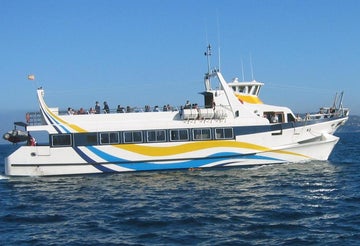 Navegarás a bordo del Estrella Fugaz, un cómodo catamarán a motor de doble altura. Tiene capacidad para 150 personas y está equipado con climatizador frío-calor, aseos, bar y cafetería, plataformas de baño...