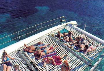 Navegarás a bordo del MM2, un enorme catamarán a vela con capacidad para 124 personas. Tiene 25 metros de eslora y cuenta con 2 motores de 150 cv. A bordo encontrarás servicio de bar, zona cubierta y zona de sol, redes sobre el mar, música de ambiente y aseos. El organizador podría modificar la embarcación sin previo aviso.