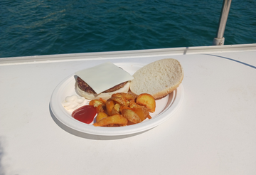 Es posible solicitar, con al menos 24 horas de antelación, una opción vegetariana a la hamburguesa del almuerzo. Recibirás los datos de contacto en el correo de confirmación de la reserva. También es posible llevar otra comida a bordo, pero es necesario tener en cuenta que no se podrá usar la nevera.