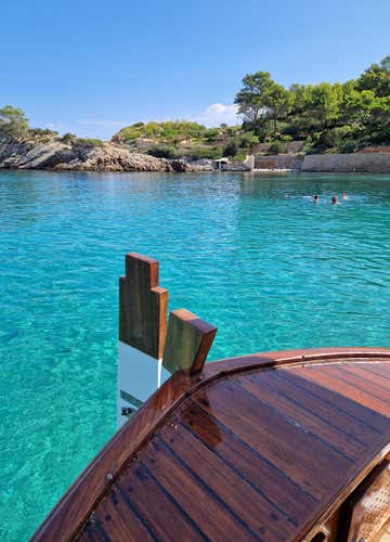 Navegarás a bordo del Lunes, un llaüt artesanal de madera construido por uno de los últimos carpinteros de ribera de Ibiza. El barco tiene 9 metros de eslora y cuenta con 2 motores Yanmar de 200 cv. La embarcación cuenta con todas las comodidades a bordo, como toldo y escalera para baño.