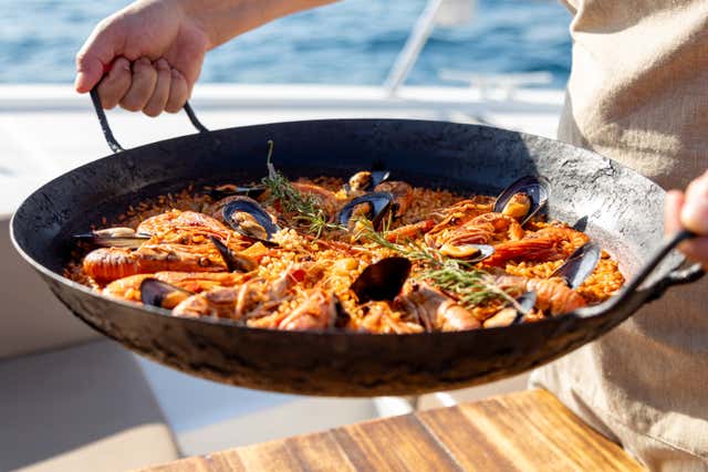 Una vez en mar abierto, participarás en una clase de paella (incluida): un chef experto te guiará paso a paso en la preparación del plato español por excelencia, explicando ingredientes, variantes y curiosidades.