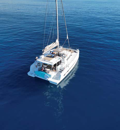 La actividad se realiza a bordo de un catamarán Bali 4.1, con longitud de 12,35 metros y capacidad máxima de 12 participantes. La embarcación está equipada con cocina, 2 cabinas dobles, 2 baños, una barbacoa exterior, altavoces con sistema bluetooth, sofá exterior en popa, lounge en el puente superior, solárium y toldo.