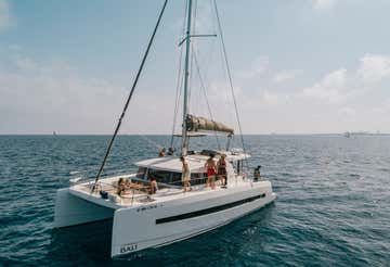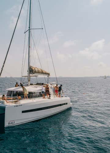 La actividad se realiza a bordo de un catamarán Bali 4.1, con longitud de 12,35 metros y capacidad máxima de 12 participantes. La embarcación está equipada con cocina, 2 cabinas dobles, 2 baños, una barbacoa exterior, altavoces con sistema bluetooth, sofá exterior en popa, lounge en el puente superior, solárium y toldo.