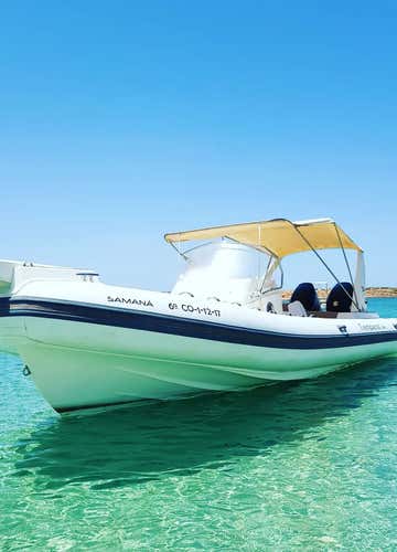 Navegaremos en la Samaná, una lancha semirrígida Capelli 850 Tempest, con capacidad para hasta 12 personas más el patrón. Saldremos desde Ibiza rumbo a Formentera en un tour inolvidable.