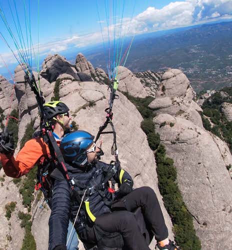Al llegar a la zona de despegue, haremos una pausa para descansar, disfrutar del paisaje y preparar el equipo. Los pilotos nos darán las instrucciones básicas de seguridad y vuelo, ajustaremos el equipo… y el corazón empieza a latir más rápido. Unos pasos corriendo por la ladera, una ráfaga de aire, el suelo que se aleja bajo los pies y, de repente… ¡estamos volando sobre una de las montañas más fascinantes de Cataluña!