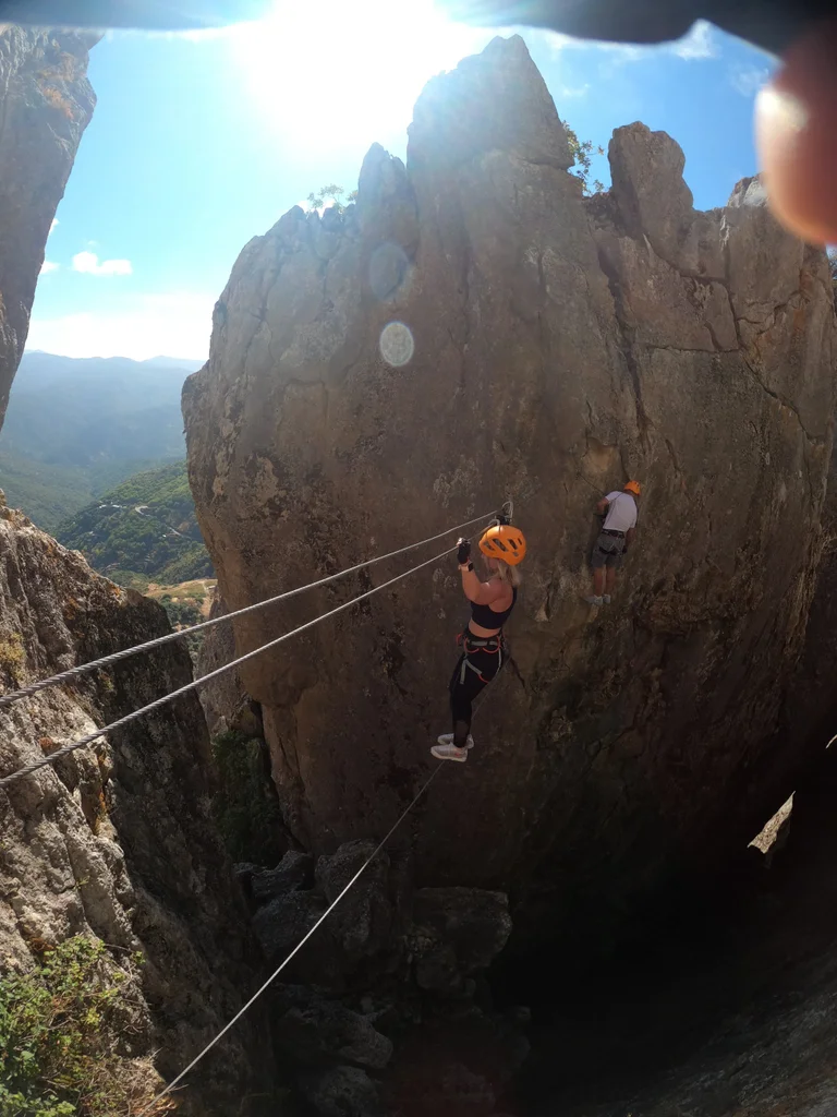 Iniciaremos el ascenso por un recorrido sintiendo la verticalidad desde el primer momento en este pequeño cañón de la Serranía de Ronda. A medida que ganemos altura en este recorrido de 110 metros con 100 de desnivel, también iremos cogiendo confianza.