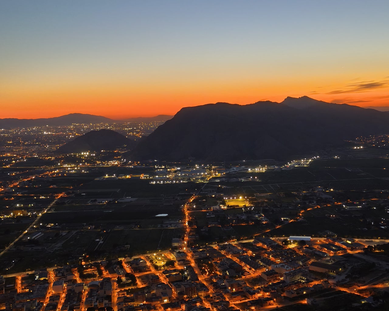- Disfruta de una perspectiva aérea única de Elda bajo la luz del ocaso