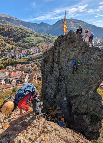 Vía Ferrata Roca de la Creu sobre el granófiro de Ribes en los Pirineos