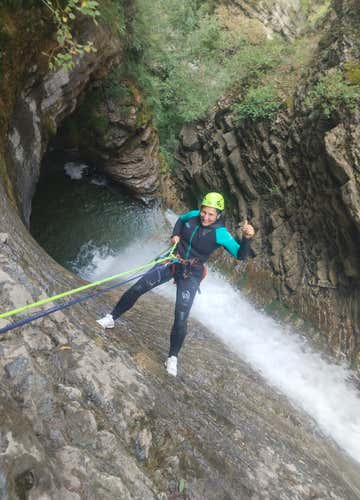 Tras una breve pausa para reponer fuerzas, será el turno del barranco del Furco, uno de los más cómodos y variados del Pirineo. Descenderemos tres rápeles (el mayor de 25 metros, ¡guau!), y quien lo desee podrá disfrutar de varios toboganes naturales y un salto opcional de hasta 8 metros. Todo el recorrido se realiza con la seguridad del guía, que asegurará cada rápel con cuerda auxiliar.