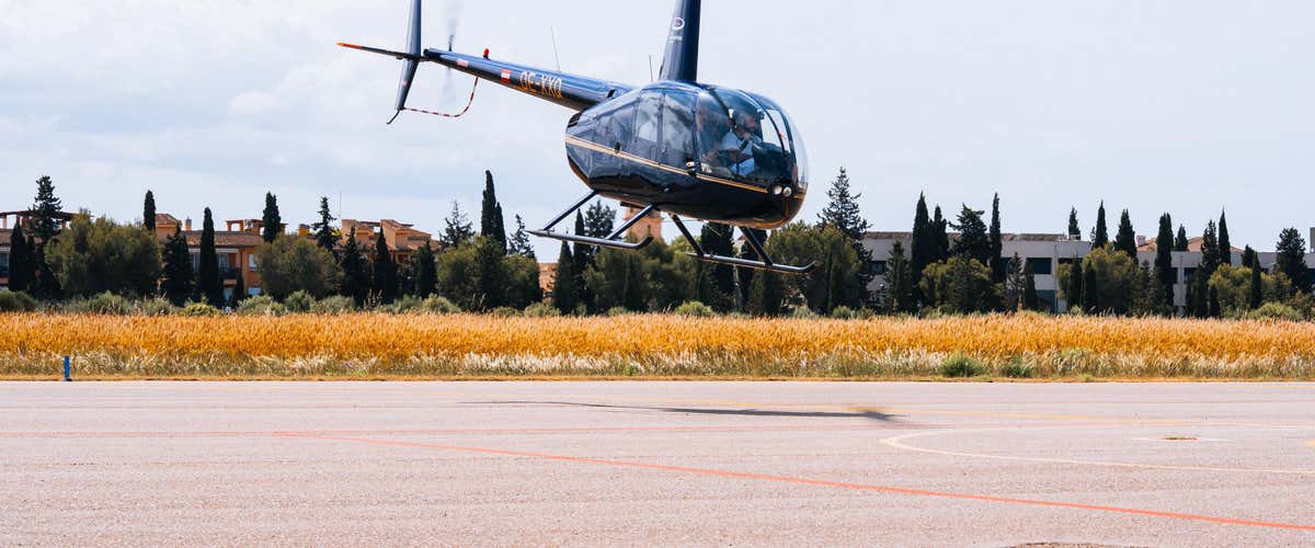 ¡Y ya estamos listos para subir a bordo del helicóptero Robinson Modelo R44 y despegar! En un abrir y cerrar de ojos estaremos sobrevolando la ciudad de Palma de Mallorca, disfrutando de una vista panorámica única de sus principales atracciones: la Catedral de Palma, el Castillo de Bellver, el estadio y el puerto. El vuelo en helicóptero tendrá una duración aproximada de 8 minutos.