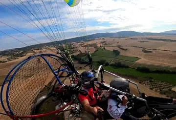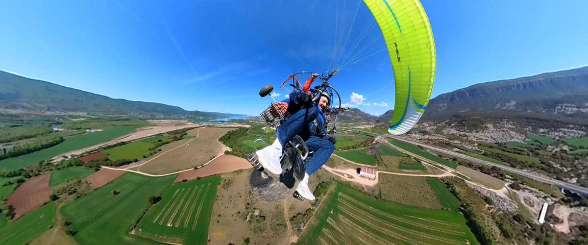 Vuelo acrobático en paramotor biplaza sobre Lodosa