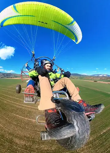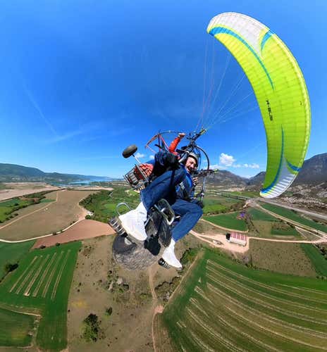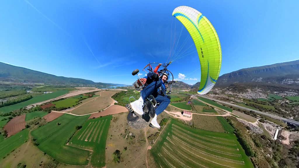 Prepárate para un vuelo acrobático en paramotor que parece sacado de una montaña rusa, pero con vistas brutales y el cielo entero para ti.