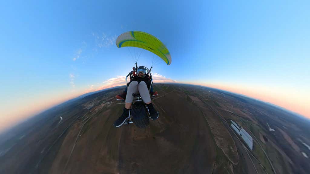 En esta aventura en paramotor biplaza, solo tienes que sentarte y disfrutar mientras sobrevuelas los valles de Navarra desde Lodosa. Un paisaje de postal se abre ante ti: campos, colinas, aves en pleno vuelo y una sensación de libertad difícil de explicar.