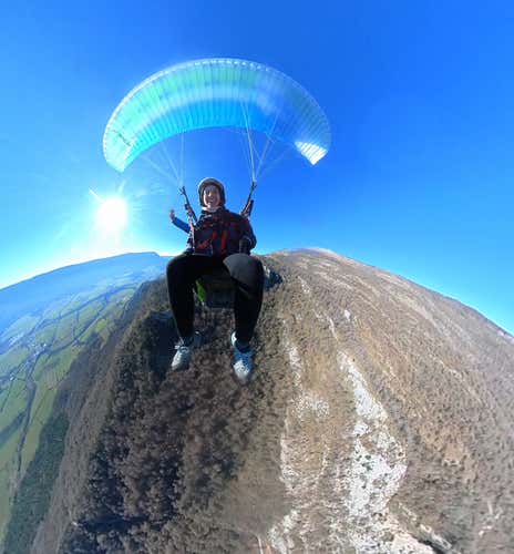 Unos pasos corriendo por la ladera, el aire nos envuelve y, de repente… ¡estamos volando! El suelo se aleja bajo nuestros pies y nos elevamos suavemente, como si la montaña nos soltara con cuidado para dejarnos flotar en el cielo.