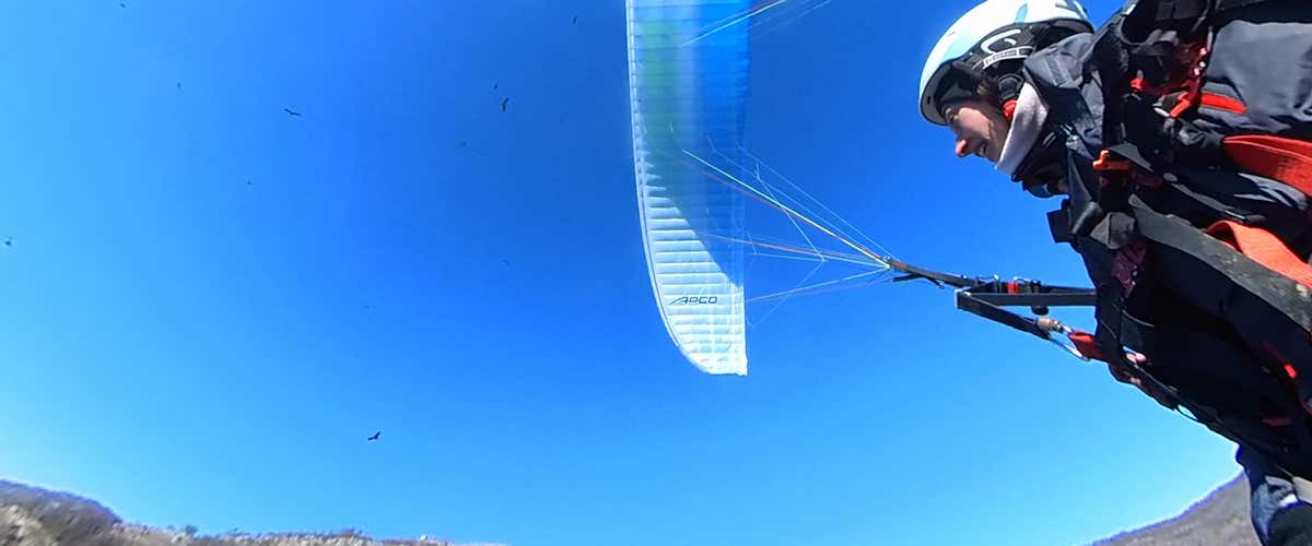 Durante el vuelo, tendrás la opción de manejar el parapente bajo la supervisión del piloto, siempre que las condiciones meteorológicas sean favorables.