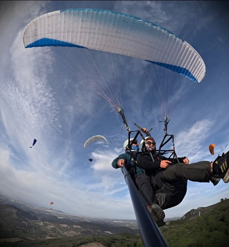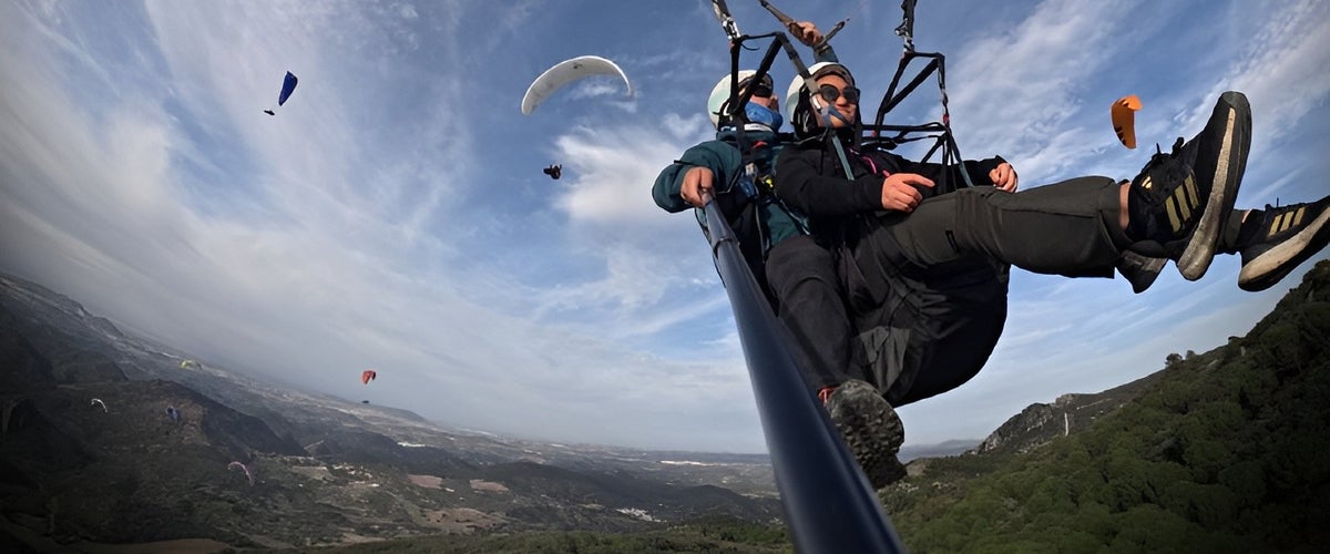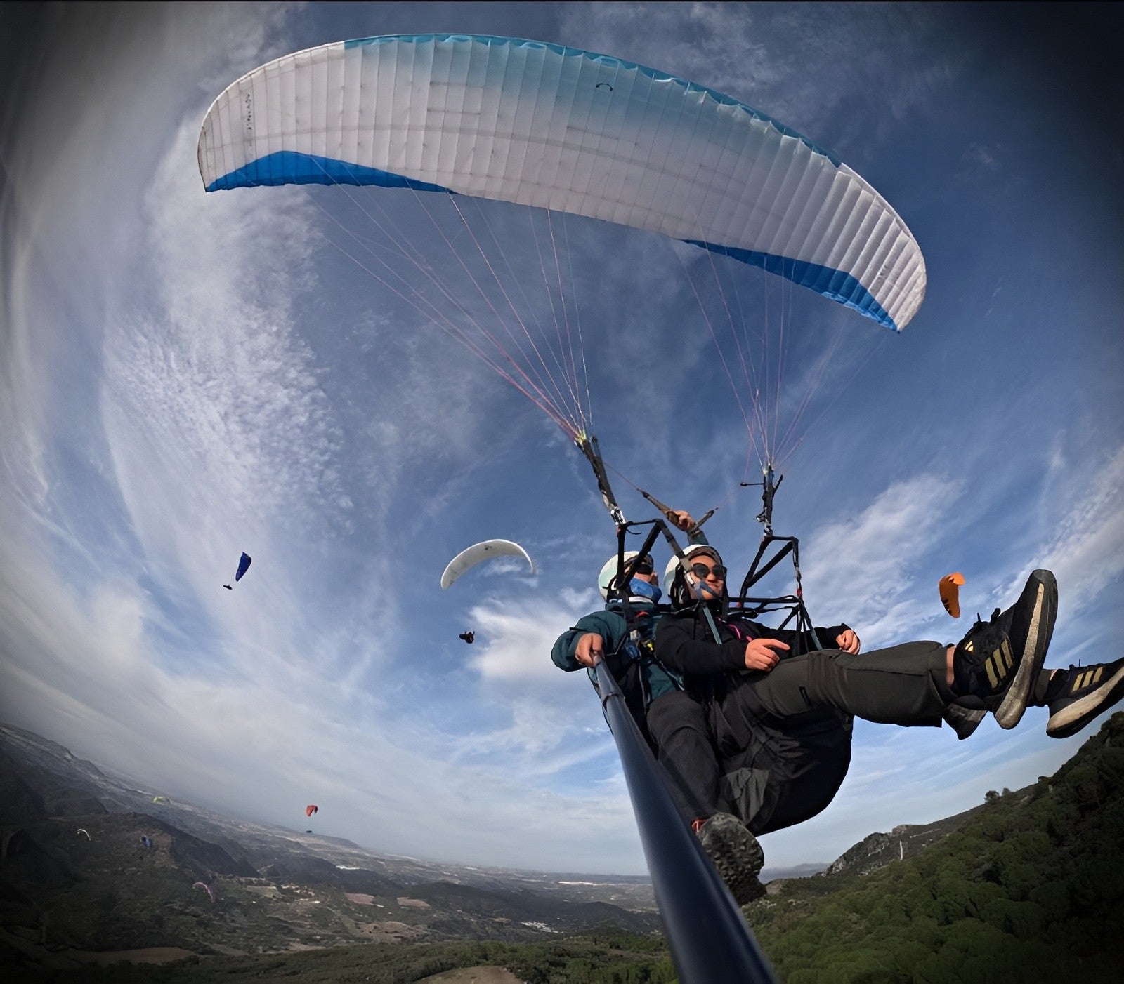 Y llegará el momento tan esperado: una pequeña carrera para ayudar con el despegue y... ¡Empieza el espectáculo! Estaremos volando sobre paisajes llenos de contrastes, desde zonas agrícolas hasta los relieves montañosos, mientras disfrutamos de la sensación inigualable del vuelo libre.