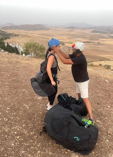 La cita es en el punto de aterrizaje de Teba o Cañete La Real, en el interior de Málaga. Allí conoceremos al piloto que nos acompañará en esta aventura aérea y con el que nos desplazaremos hasta la zona de despegue.