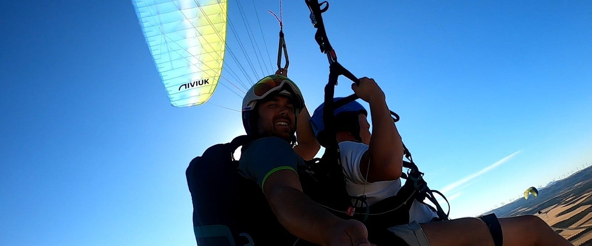 Antes de comenzar, realizaremos un briefing inicial para conocer las maniobras de despegue y aterrizaje, además de las normas de comportamiento durante el vuelo. Una vez equipados con el arnés y el casco, nos colocaremos junto al instructor y realizaremos una pequeña carrera de unos metros...