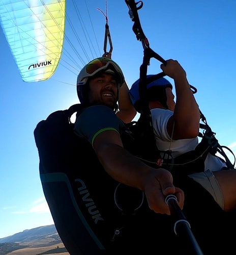 En la opción de 30 minutos, y si las condiciones lo permiten, podrás manejar el parapente durante algunos minutos bajo la supervisión del piloto profesional.