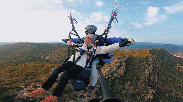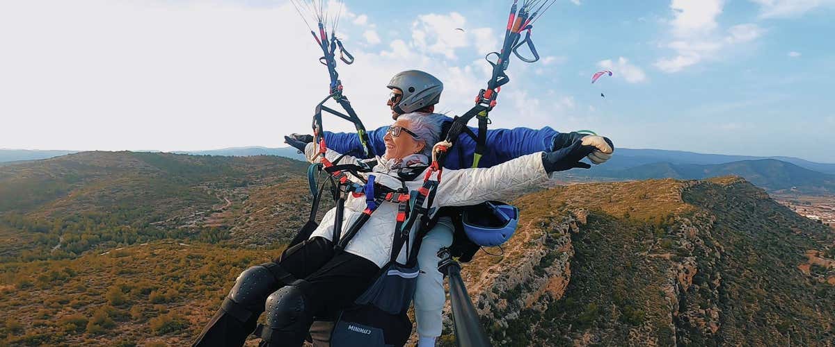 En Villar del Arzobispo puedes descubrirlo, con un emocionante vuelo en parapente biplaza. Una pequeña carrera… y en segundos estarás volando, con los espectaculares paisajes valencianos bajo tus pies. El piloto se encargará de todo: tú solo disfruta de las vistas y la sensación de libertad.