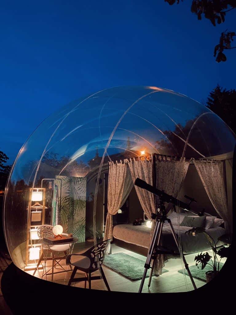Una noche bajo el cielo abierto, pensada para compartir calma e intimidad sin interrupciones. Disfruta de 1 noche para 2 en una burbuja transparente en pleno campo gallego, con desayuno casero incluido y la opción de completar la experiencia con 1 hora de spa de hidromasaje en un hórreo tradicional. Una escapada tranquila y diferente para desconectar de verdad.